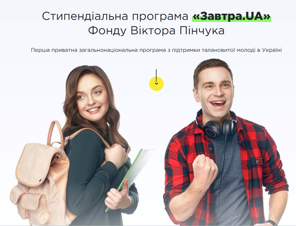 Стипендіальна програма «Завтра.UA» - це флагманський проект Фонду Віктора Пінчука, запущений у 2009 році для підтримки найперспективнішої студентської молоді. Щороку вона об’єднує близько 400 найкращих здобувачів вищих навчальних закладів України.