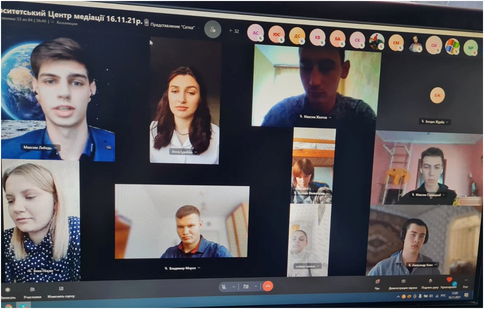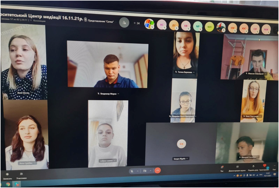 16 листопада 2021 року на базі Університетського Центру медіації, що функціонує при кафедрі психології та соціології Східноукраїнського національного університету імені Володимира Даля, було проведено чергове засідання у вигляді об’єднаної кураторської години на тему «Базові навички медіатора. Менторство та діалоги порозуміння» для здобувачів вищої освіти факультету транспорту і будівництва. У заході прийняли участь не тільки здобувачі вищої освіти різних освітніх програм цього факультету, а й викладачі, що виконують обов’язки кураторів академічних груп. Проведено захід здобувачами вищої освіти спеціальності 053 Психологія (освітня програма "Психологія") кафедри психології та соціології, які є членами центру, під керівництвом доктора психологічних наук, професорки Лосієвської Ольги Геннадіївни.