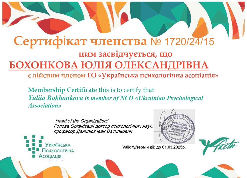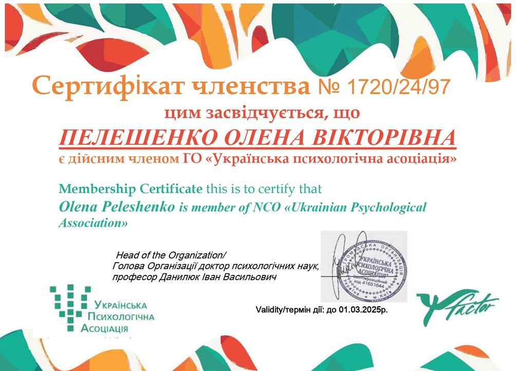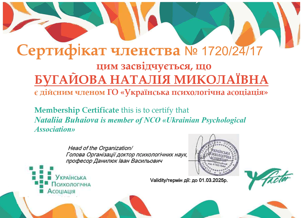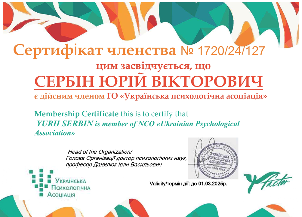 Отримано сертифікати дійсних членів ГО "Українська психологічна асоціація"