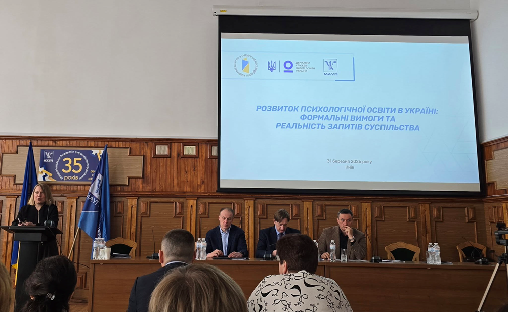 Київ, 31 березня 2026. У конференц-залі Міжрегіональної Академії управління персоналом відбувся семінар "Якість психологічної освіти: виклики часу та перспективи розвитку". Організатори: Міністерство освіти і науки України, НАЗЯВО, Державна служба якості освіти, МАУП. Захід об’єднав лідерів вищої освіти для аналізу підготовки психологів в умовах війни. Представниці Східноукраїнського національного університету імені Володимира Даля теж прийняли участь у заході: Юлія Бохонкова, доктор психологічних наук, професор, завідувачка кафедри психології та соціології; Людмила Володіна, керівниця відділу забезпечення якості освітньої діяльності та якості вищої освіти; Олена Ткачук, в.о. декана факультету здоров'я людини, кандидат педагогічних наук, доцент; Алімє Османова, кандидат психологічних наук, доцент, доцент кафедри психології та соціології.