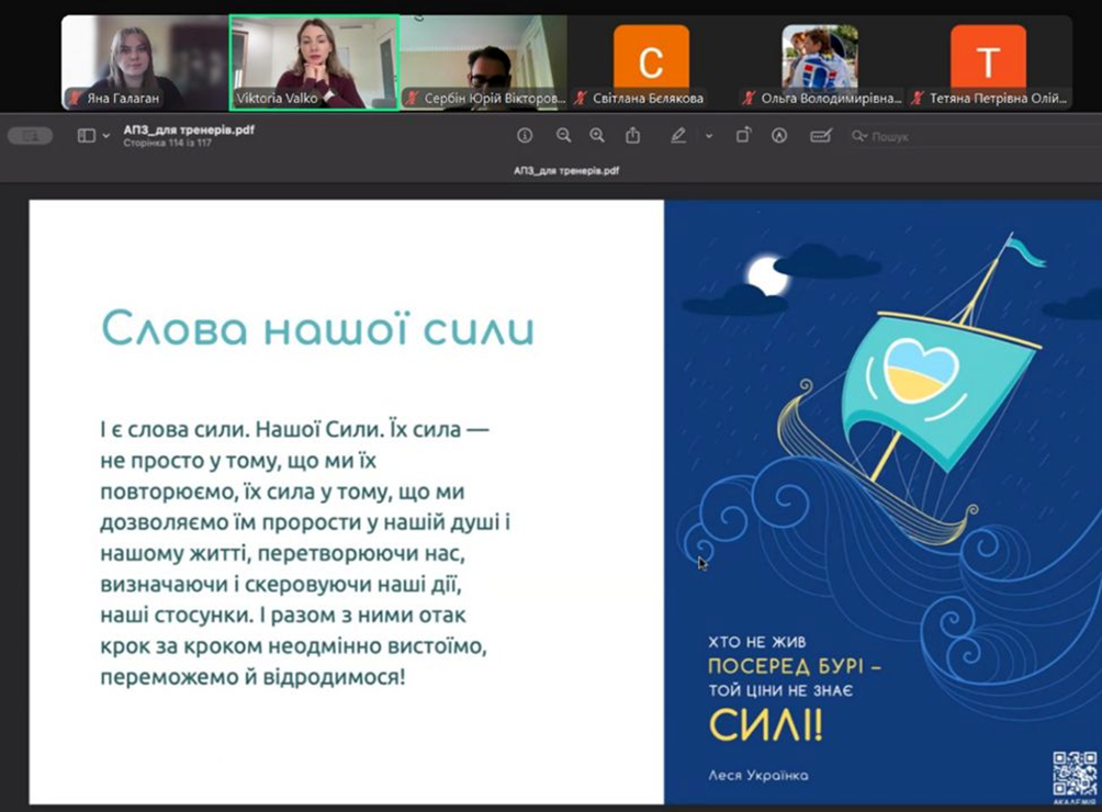 Участь в навчальному курсі «Академія психічного здоров’я», реалізованого у рамках Національної програми ментального здоровʼя «Ти як?» Українським благодійним фондом «Коло сім’ї» та фондом Americares