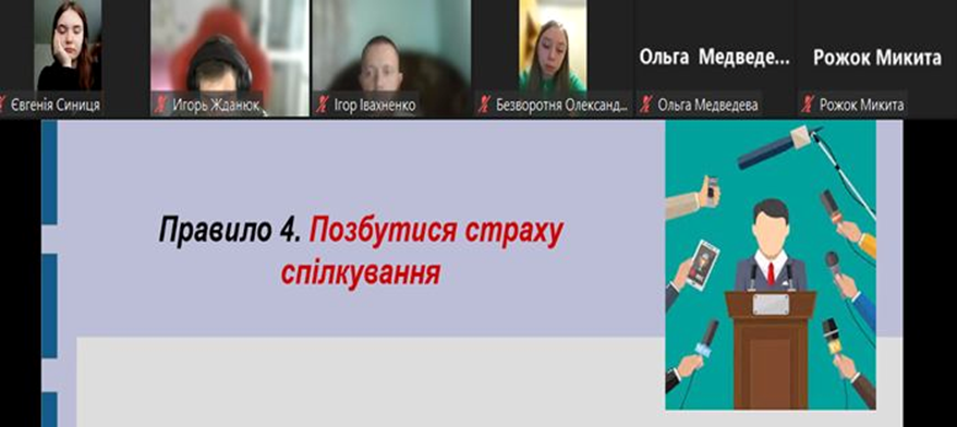 15 листопада 2023 року для майбутніх психологів, що здобувають вищу освіту на кафедрі психології та соціології, проведено виховний захід на тему «Психологія впевненості». Від впевненої поведінки залежить наш успіх, усвідомленість життєвих цілей, смислів та цінностей. До організації та проведення заходу долучилась здобувачка вищої освіти четвертого курсу заочного відділення спеціальності 053 Психологія Інна Фурсенко.