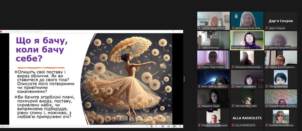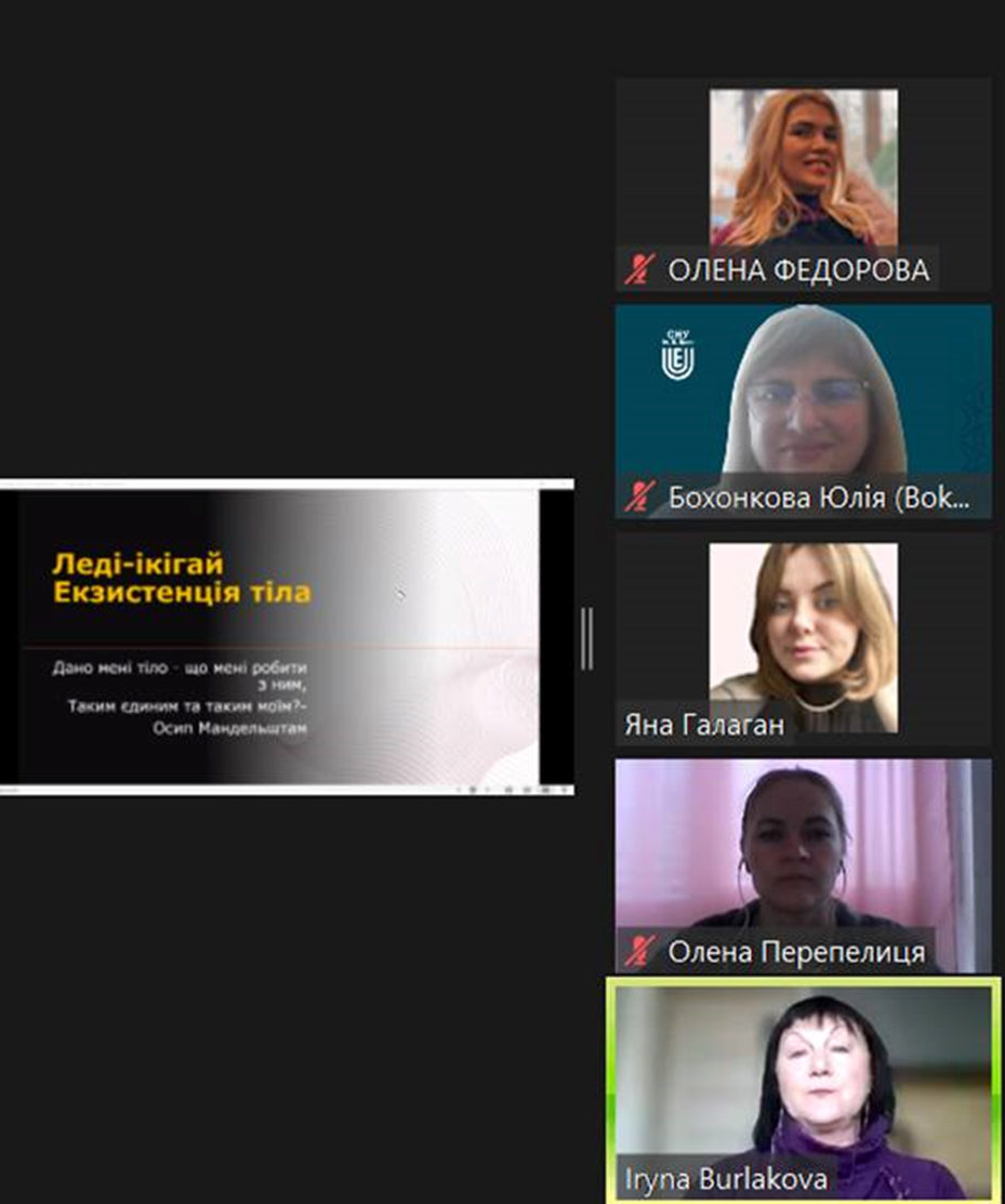 Здобувачі вищої освіти спеціальності 053 Психологія освітньої програми «Психологія» та викладачі кафедри прийняли участь у тренінгу на тему «Екзистенція тіла» з серії тренінгів «Леді-ікігай» від професорки Ірини Бурлакової