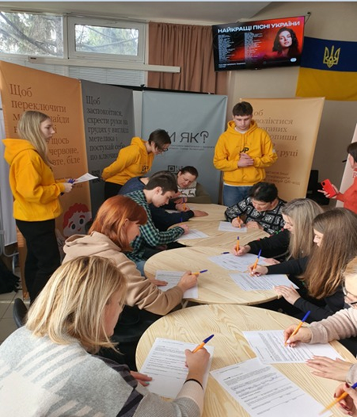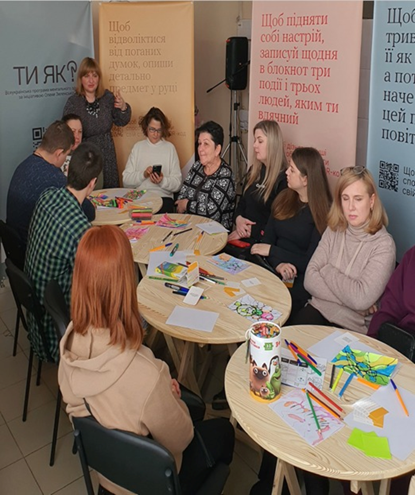 Формування в суспільстві культури піклування про ментальне здоров’я – головна та визначальна місія Всеукраїнської програми ментального здоров’я національного рівню «Ти як», ініційованої першою леді України Оленою Зеленською. З цією метою та задля навчання навичкам відновлення ментального здоров’я, в перший день весни 1 березня 2024 року, здобувачі вищої освіти спеціальності Психологія (освітньої програми «Психологія») Прохор Луценко, Дар’я Рахманова та Надія Ромас (учасники проєкту IDEA CREATIVE TEAM), разом із завідувачкою кафедри психології та соціології факультету здоров’я людини Східноукраїнського національного університету імені Володимира Даля, професоркою, доктором психологічних наук Юлією Бохонковою, відвідали Координаційний центр надання допомоги ВПО з Луганщини при Сватівській міській військовій адміністрації Сватівського району Луганської області, який розташований у м. Бровари Київської області, та провели семінар-навчання для внутрішньо переміщених осіб Луганської області на тему «Розвиток навичок стресостійкості та резильентності у ВПО в ситуаціях життєвих змін». Захід проведено за ініціативи та підтримки заступниці голови Луганської обласної державної адміністрації із соціальних та гуманітарних питань, уповноваженої з питань впровадження в Луганській області програми ментального здоров’я «Ти як» Катерини Безгинської та заступниці директора Департаменту охорони здоров’я Луганської обласної державної адміністрації, регіональної координаторки проєкту ментального здоровя «Ти як» Інни Сазонової. На заході був присутній керівник Сватівської міської військової адміністрації Сватівського району Луганської області Олександр Міткевич, з яким обговорили перспективи для подальшого плідного та різнобічного співробітництва. Участь у заході прийняли близько 35 осіб з числа ВПО та співробітники координаційного центру. Протягом тренінгу учасники опановували навички боротьби зі стресом та страхом, навчались методам регулювання емоційних станів та психологічного відновлення, знімали напругу в тілі, підіймали сумний настрій та відволікались від поганих думок за допомогою методів арт-терапії, дихальних вправ та інших психотерапевтичних практик. Представники університету після завершення тренінгу ознайомили присутніх з інформацією про особливості вступної кампанії цього року та запросили бажаючих та членів їх родин приєднатись до команди Далівського університету, і продовжувати навчання протягом життя саме в нас, формуючи свій власний шлях до успіху у Східноукраїнському національному університеті імені Володимира Даля.
