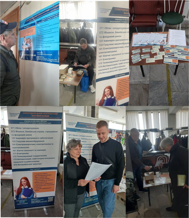 З 24 квітня 2023 року у Сєвєродонецькому гуманітарному хабі міста Дніпро (проспект Калнишевського, 27к) розпочав роботу консультаційний пункт ВСП «Сєвєродонецький політехнічний фаховий коледж Східноукраїнського національного університету імені Володимира Даля». Ознайомитись з особливостями вступної компанії 2023 року та зі спеціальностями, за якими відбувається навчання у коледжі, можна з понеділка по п’ятницю з 10.00 до 13.00.